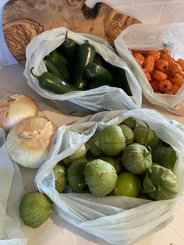Made with fire-roasted jalapeno and Thai chili peppers, fresh pineapple, cilantro and lime, fire-roasted tomatillo and Vidallia onion, herbs and spices. With just a touch of heat, and a complex flavor profile that is sweet and vibrant, this is a sauce that is hard to put down!